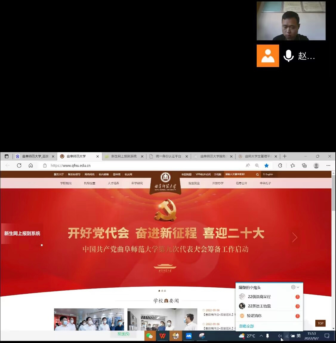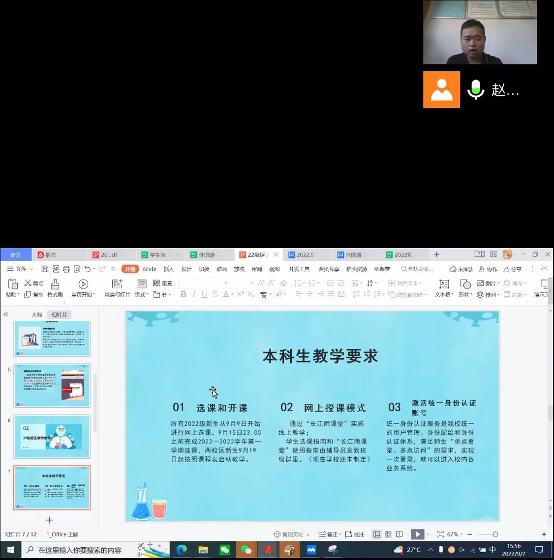 2022级辅导员赵文彬和教务处李娜老师分别向新生介绍了线上报道要求和选课流程,黑料社