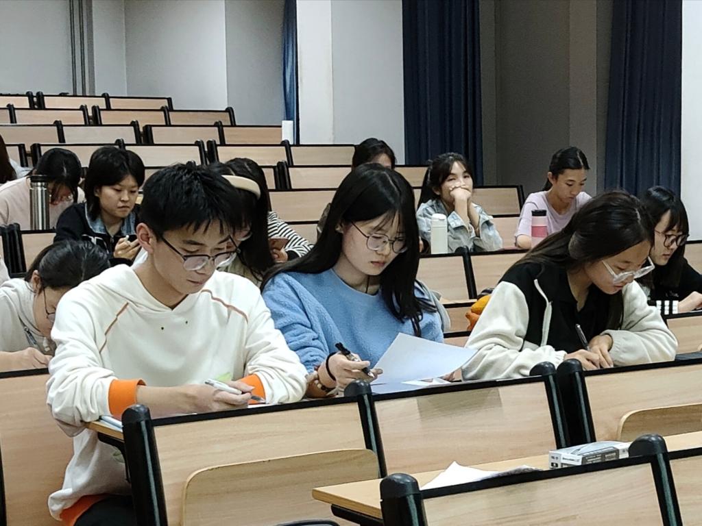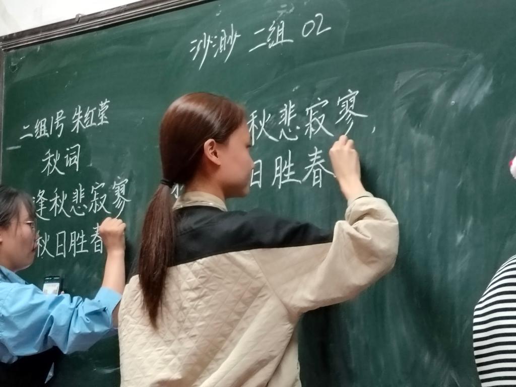 本次粉笔字大赛分为初赛、决赛两个阶段,师范生和非师范生两个组别,面向大二、大三年级全体同学展开。初赛阶段以班级为单位,参赛选手以《春晓》为写作内容,每班推出两名优秀选手参与决赛。决赛阶段,比赛内容为刘禹锡的《秋词》。比赛现场,选手们胸有成竹,从容自信,笔法或挺拔刚劲、或秀丽婉约、或潇洒俊逸、或古朴庄重,展现了他们深厚的书法功底和独特个性。最终,师范组李涵瑜、文菲,非师范组于满馨同学表现出色,荣获一等奖。