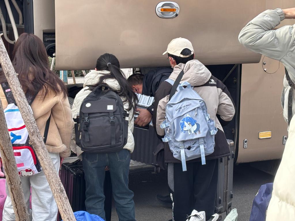 党委副书记王作茂,副院长邢加新,2022级辅导员赵文彬亲临现场,全体2022级师范实习生们乘坐客车前往各自实习地点。
