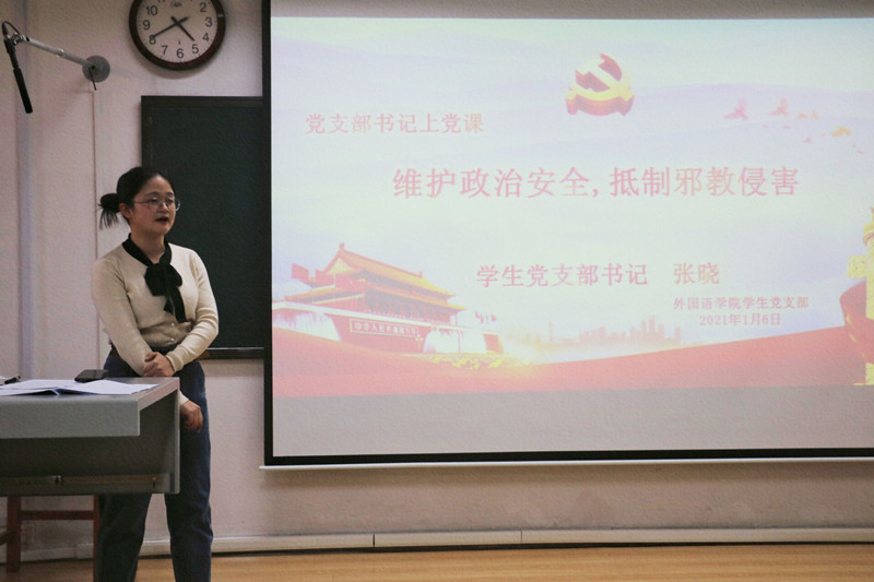 学生党支部于系楼301会议室开展“支部书记上党课---维护政治安全,抵制邪教侵害”的党课学习活动。本次党课由黑料社