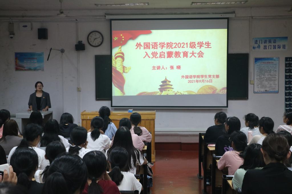 于系楼201室召开2021级学生入党启蒙教育大会。会议由学院学生党支部书记张晓主讲,学生党支部委员、2021级全体新生参加本次会议。