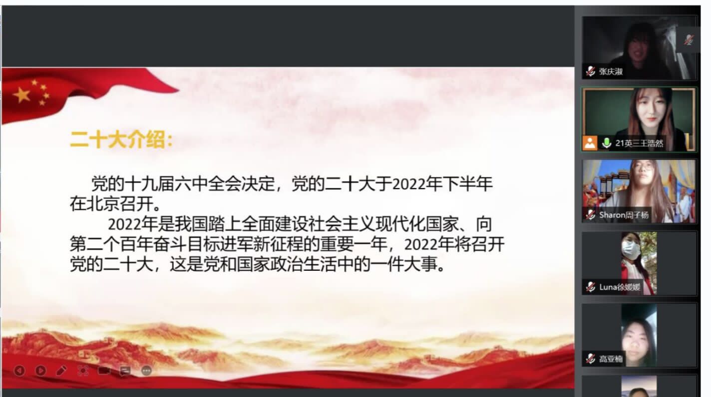 于线上举办“砥砺奋进守初心,青春献礼二十大”主题团课活动。本次主题团课由各班团支书主持,班级同学积极参加。