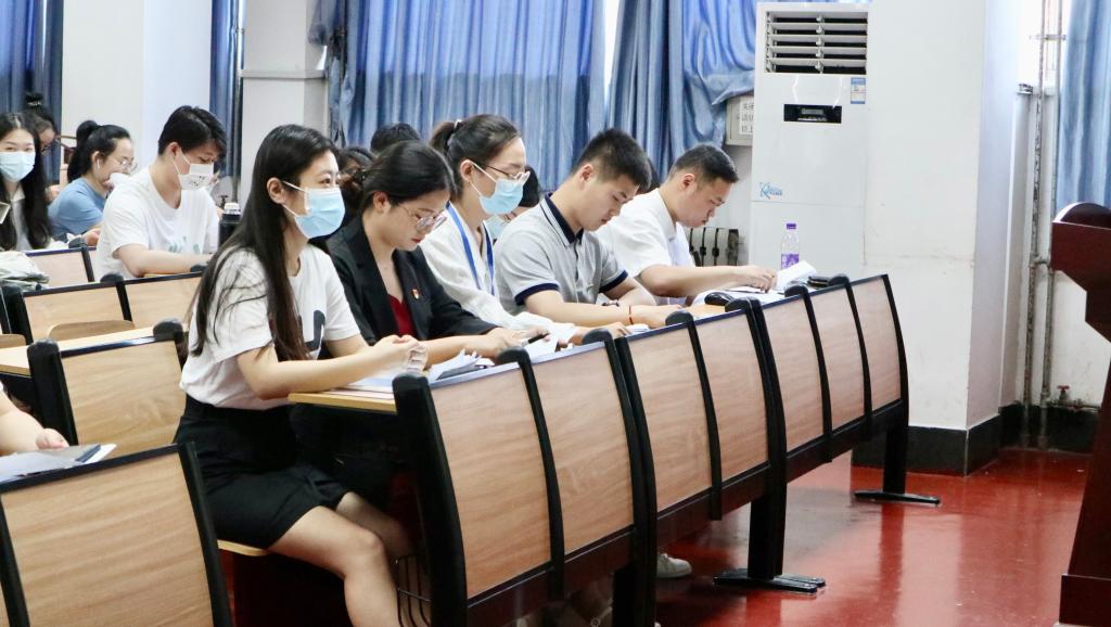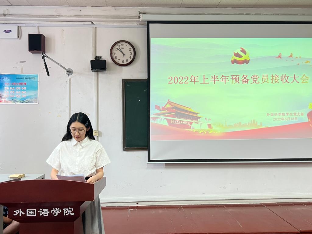 学生党支部于系楼201室召开2022年上半年预备党员接收大会。会议由学生党支部书记张晓主持,全体党员参加,学院党委副书记王作茂莅临指导。会议对能否接收王慧慧等34名发展对象为中共预备党员有关事宜进行了讨论。