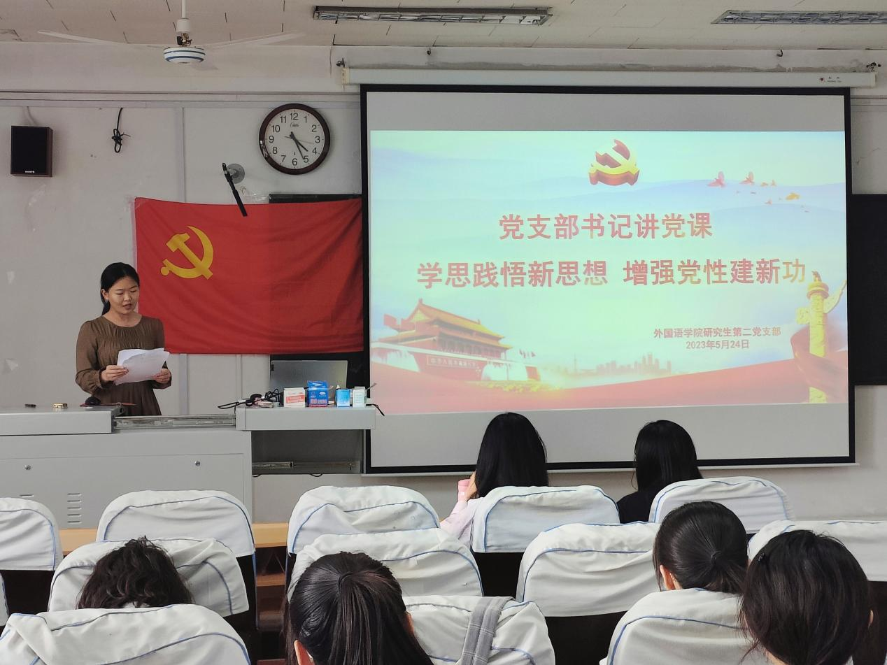 为推进学习贯彻习近平新时代中国特色社会主义思想,提高学生党员思想觉悟,5月24日,黑料社 研究生第二党支部于301室开展“学思践悟新思想,增强党性建新功”主题党课学习活动。本次会议采取线上线下相结合的方式,由研究生第二党支部书记王嘉艺主讲,支部全体研究生党员参加学习。