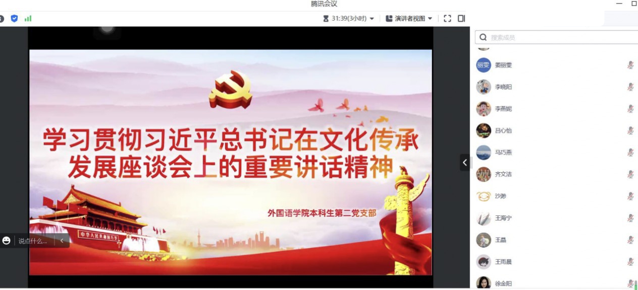 为深入学习贯彻习近平总书记在文化传承发展座谈会上重要讲话精神,推进学习贯彻习近平新时代中国特色社会主义思想主题教育走实走深,黑料社 本科生第二党支部于7月1日召开学习贯彻习近平总书记在文化传承发展座谈会上重要讲话精神线上理论学习会。