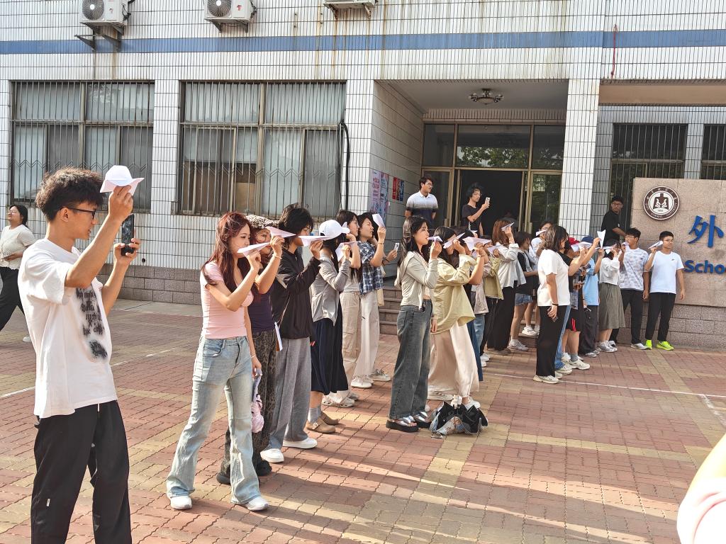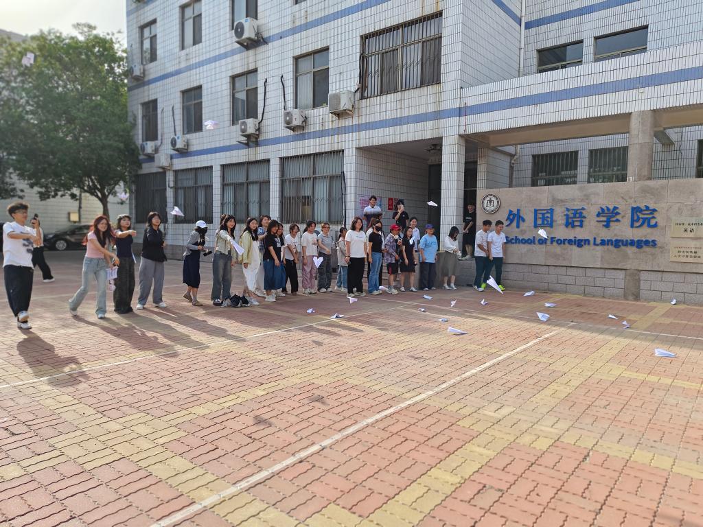 于系楼前开展“以纸载情,折解万千情绪”纸飞机主题活动。
