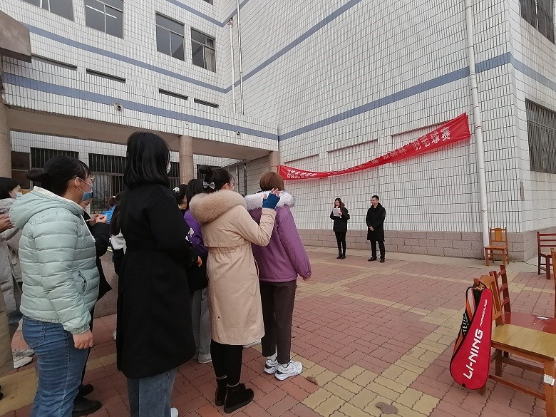 楼前羽毛球场地正式拉开序幕,本次2020级研究生团体赛共分为三场,分别是学科英语班对战外国语言文学班,外国语言文学班对战英语笔译班,英语笔译班对战学科英语班。本次比赛裁判长为研究生会文体部部长田立辉。