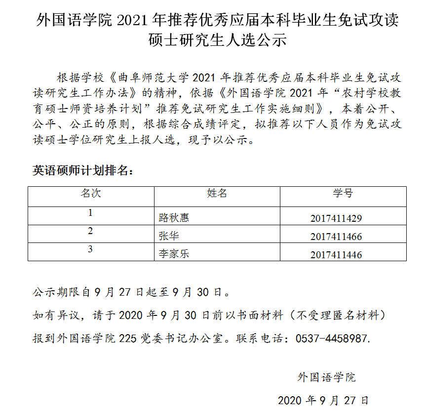 黑料社 2021年推荐优秀应届本科毕业生免试攻读硕士研究生人选公示